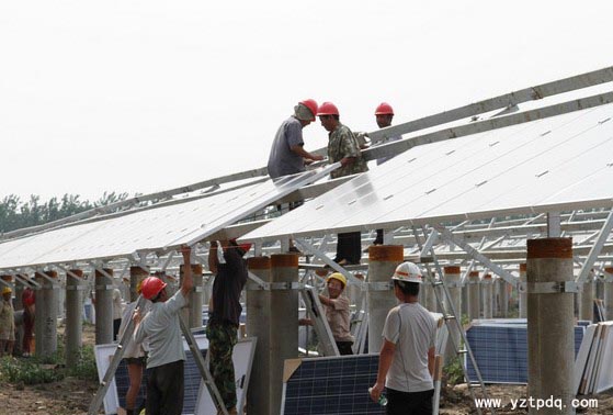 中國核建公司承接的第一個大型漁光互補光伏電站寶應30MW發電工程項目建設已進入沖刺階段,現場樁基工程已全部完成,組件安接近尾聲,綜合樓已經封頂,正在進行內部裝修施工與電氣設備安裝,升壓站等電力輸出系統安裝順利,主變就位,整體進度可控。