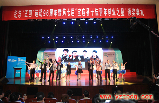 2015年4月28日,紀(jì)念“五四”運(yùn)動(dòng)96周年暨2015“尋跡·創(chuàng)業(yè)路”第七屆“寶應(yīng)縣十佳青年創(chuàng)業(yè)之星”頒獎(jiǎng)典禮在縣行政會(huì)議中心報(bào)告廳隆重舉行。寶應(yīng)縣委書記、縣人大常委會(huì)主任王炳松,團(tuán)市委書記佘俊臣,縣領(lǐng)導(dǎo)周玉寶、王友芳、顧長(zhǎng)榮、張偉、夏征宇、楊洪國、王松年等出席活動(dòng)。