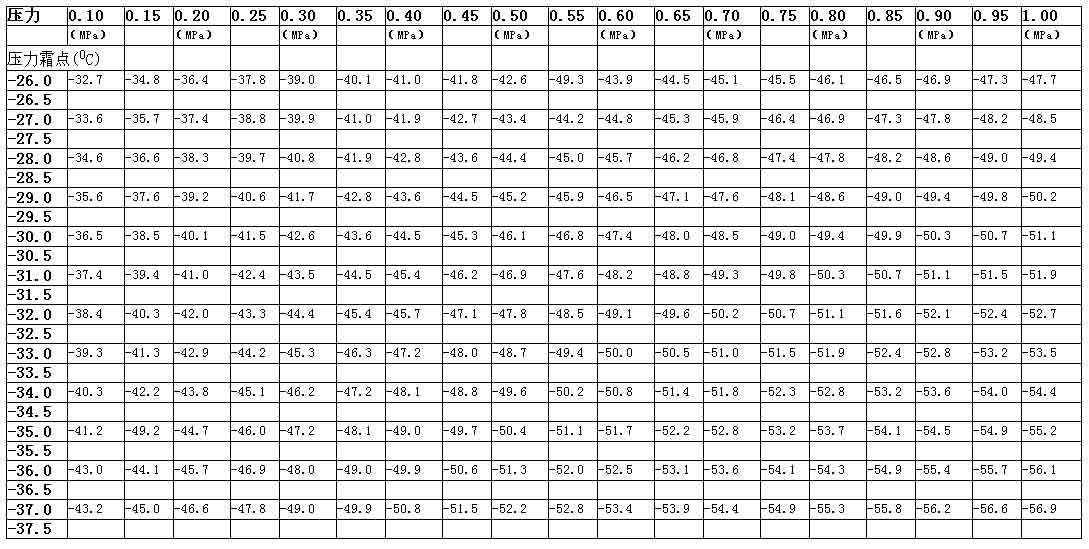 壓力霜點(露點)——壓力——常壓霜點(露點)對應(yīng)的關(guān)系表