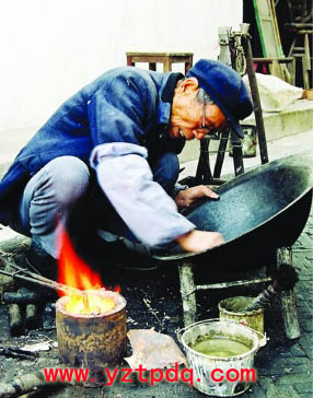 補鍋匠左手拉著風箱,右手提過鍋,放在鋪有草木灰的地上,m.xsc100.com用一只小巧玲瓏的鐵錘,在要補的四周輕輕地敲打。