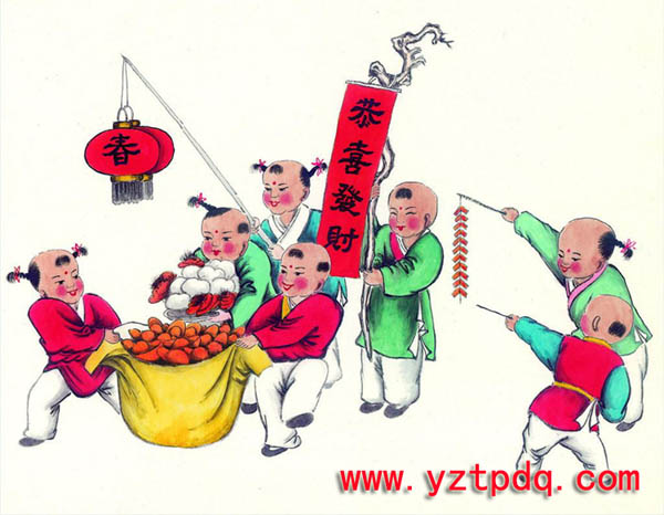 送灶以后,就真正開始了年貨的采購與囤積,貼春聯、貼門神、貼福字、貼年畫,這些寓意吉祥的大紅色的紙張給新年帶來了無處不在的喜氣與熱情,往往舊式有前后門的房屋會在前門貼春聯,后門貼門神畫——唐朝初年的兩位大將秦叔寶和尉遲公。據說大門上貼上這兩位門神,許多妖魔鬼怪都會避而遠之,而小孩子們則是對這兩位形象頗有點猙獰的門神既怕又敬、既畏又尊,很是有趣。家里屋內的墻壁或房門上貼得都是些喜氣洋洋的年畫,比如麒麟送子、和氣娃娃等,現在的家庭大多以一卷卷漂亮精美的掛歷取代了各種花花綠綠的年畫,而“福”字卻貼得多了起來,那是因為越來越多的商家們愿意在新年貨品中夾上一兩張“福”字作為贈品,“福”字得倒著貼在門或窗戶上,這樣過路的人們看見了,會指著說“福”倒了,那么福就真的要到了哦。