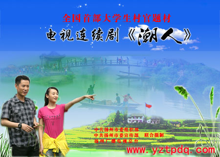 在中共揚州市委的領(lǐng)導(dǎo)下,由揚州市委組織部、市委宣傳部組織拍攝,市廣電總臺投資拍攝的我省首部大學(xué)生村官題材電視連續(xù)劇《潮人》,13日起每天17:00至19:30在中央電視臺第8頻道播出,14日起在揚州電視臺新聞頻道19:30至21:50播出。據(jù)透露,由于該劇主題鮮明、內(nèi)容健康、制作精良,有著深刻的現(xiàn)實意義與審美價值,已被中宣部、國家廣電總局確定為慶祝建黨90周年優(yōu)秀電視劇推薦劇目。
