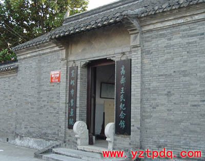 高郵王氏紀念館坐落在高郵市區西南部一條叫西后街的老街中段,館門坐西朝東,占地約一千多平米。王家三代朝廷為官,家大業大,名聞遐邇,其故居早先規模較大,屋宇連綿近百間,后因歲月滄桑,后裔外遷,戰亂頻發等,有的房屋毀壞倒塌,有的移作尋常百姓人家,有的則改建成了工廠的車間。改革開放不久的1983年,當地黨委政府為紀念垂名史冊的清代音韻、訓詁學大師王念孫、王引之父子,激勵故里鄉親與莘莘學子緬懷先賢、勤勉好學、奮發有為,遷走工廠的部分車間和入住其中的居民,修復了東廂屋三間,北書房三間,古井一口,修建門廳三間和部分故居院墻,建立高郵王氏紀念館,并對外開放。1994年又修建正廳五間、廂房六間,重樹“獨旗一桿”,塑王氏父子像一座。清磚黛瓦的清式建筑造型古樸,幾竿翠竹扶蘇,幾簇梅花相依,使故居庭院的環境顯得格外幽靜雅致。
