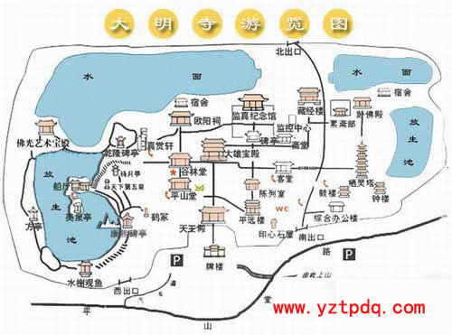 揚州大明寺,因初建于南朝劉宋孝武帝大明年間(457—464年)而得名。唐天寶元年(742年),名僧鑒真東渡日本前,即在此傳經授戒,該寺因此名聞天下。