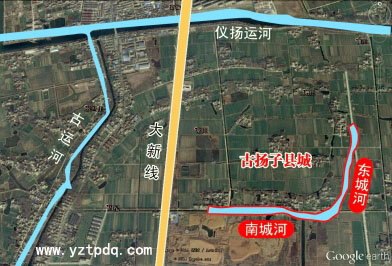 2014年12月4日,江蘇省紅樓夢學會會員陸守超,根據衛星地圖結合史料記載,在儀征經濟開發區(新城鎮東南)越江村或東升村境內,發現疑似古揚子縣城的東城河和南城河遺存。古揚子縣城就位于當中焦莊組、曹莊組和邵莊組一帶。在古揚子縣城遺址的東北角還發現了都天廟遺址。