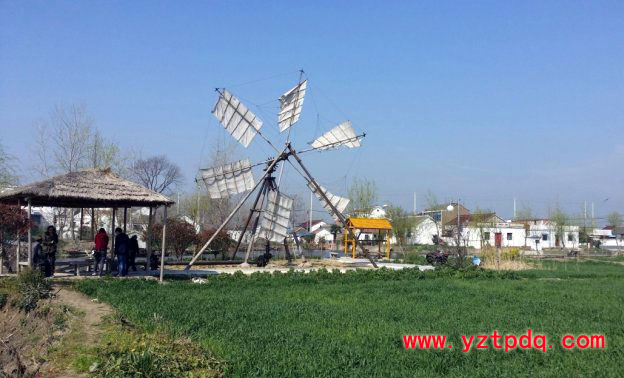 四、沿小道向北跨過小橋便是大風車樂園,大風車、水車、磨子、甸,再現原歷史大型生產、生活用具的記憶。