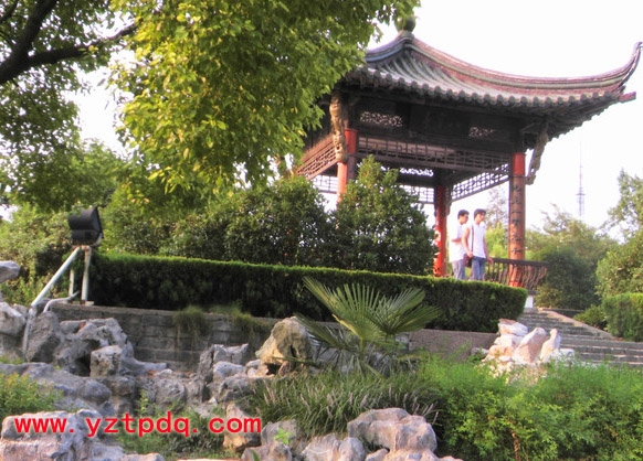 八寶亭坐落在揚州寶應城中心的縱棹園里。進了素磚。高瓦的園門,走過垂柳依依的石路,踏上溪流涓涓的小橋,那飛檐翹角、凌然欲飛的八寶亭就躍人了你的眼簾。遠遠地,趙樸初先生書寫的餾金大字“八寶亭”赫然醒目。拾階而上,佇足亭內,八面來風,近聞鳥語花香,遠眺旭日東升,悠悠然如臨仙境。