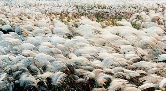 實際上,荻的花期和果期是8-10月,現在看到的白絨絨的花,其實是它的種子以及柔毛。