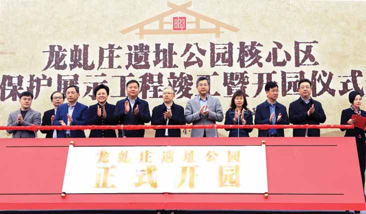 遲日江山麗, 春風花草香。2019年4月28日上午,龍虬莊遺址公園核心區保護展示工程竣工暨開園儀式在龍虬莊遺址公園舉行。省文化和旅游廳副廳長、省文物局局長吳曉林,省文化和旅游廳文物綜合處處長錢寧,揚州市文化廣電和旅游局副局長徐國兵,南京博物院考古研究所副所長周潤墾,以及高郵市領導共同為龍虬莊遺址公園開園推桿揭幕。