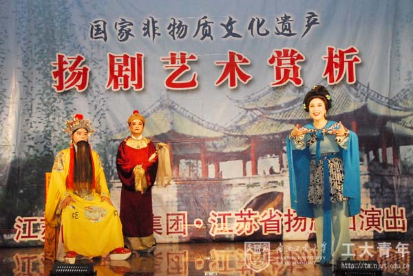 揚(yáng)據(jù)是揚(yáng)州地方戲劇,流行于蘇北、江南、上海和安徽部分地區(qū)。起源于二百多年前的揚(yáng)州亂彈(即揚(yáng)州花鼓)。亂彈沒落后,藝人流散民間,促進(jìn)了香火戲花鼓戲的形成與發(fā)展。香火戲(俗稱“大開口”)、花鼓戲(俗稱“小開口”)于1936年在上海合并,稱“維揚(yáng)戲”。解放后,維揚(yáng)戲改稱揚(yáng)劇。揚(yáng)劇音樂很豐富,許多曲牌淵源于揚(yáng)州清曲,常用曲牌有《滿江紅》、《蘆江怨》、《銀絞絲》、《剪靛花》、《哭小郎》、《楊柳親青》、《梳妝臺》及《奤奤調(diào)》、《大補(bǔ)缸》、《大陸板》、《鮮花調(diào)》、《數(shù)板》、《探親調(diào)》等鑼鼓經(jīng)則借鑒于揚(yáng)州清曲和京劇。傳統(tǒng)劇目繼承于亂彈、香火、花鼓及維楊戲,如《鄉(xiāng)城會》、《賽琵琶》、《九郎官》、《斬老龍》、《打花鼓》、《種大麥》、《恩仇記》、《白蛇傳》等,也有移植自其他曲種劇種的。解放后,根據(jù)傳統(tǒng)劇目整理和新創(chuàng)新了一些劇本。揚(yáng)劇的角色也分為生、旦、凈、丑等,在表演藝術(shù)方面的特色,重視丑和旦的表演。因一丑一旦的傳統(tǒng)劇目很多,從而形成了揚(yáng)劇的風(fēng)格-喜劇的風(fēng)格。