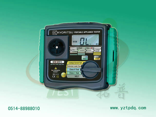 KEW 6201A 手持式電氣測量儀具有3種功能以確保CLASSI,CLASSII器具的安全性。同時可測試主電壓。儀器采用大型LCD顯示讀數,LCD下方4個LED指示燈可清晰顯示是否符合AS/NZS3760規定的界限值。